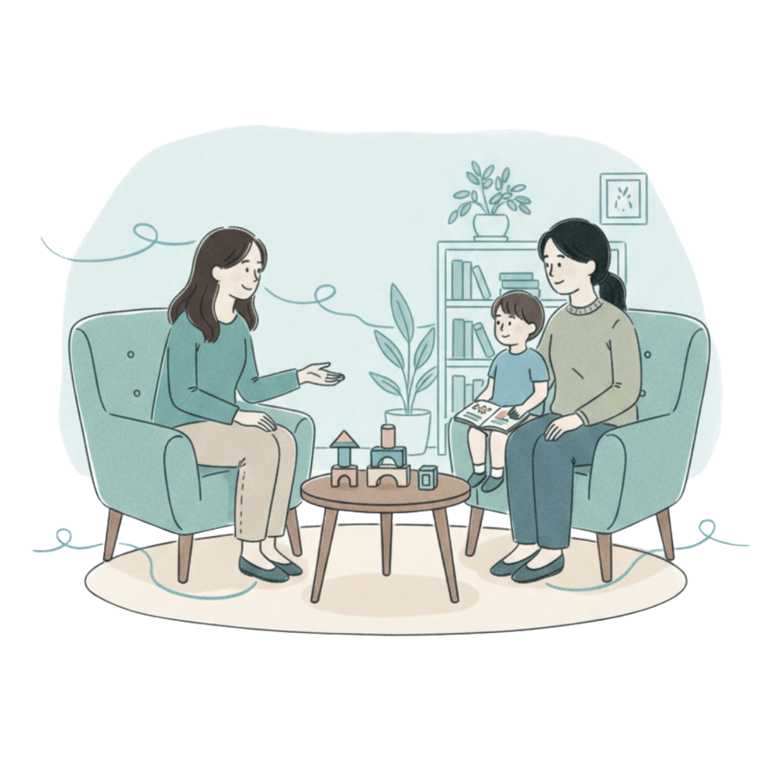- For young children, the first session is held with parents only; subsequent sessions include the child.